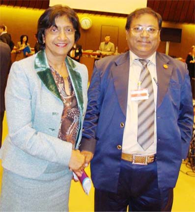 On the participation of 23rd International Coordinating Committee-ICC General Meeting of United Nations for Human Rights in Geneva, Switzerland dated on the 23rd March 2010 in the picture (from left) Ms. Navy Pillay, Secretary General of UN High Commissioner for Human Rights, Dr. Saiful I. Dildar, Secretary General of Bangladesh Human Rights Commission-BHRC